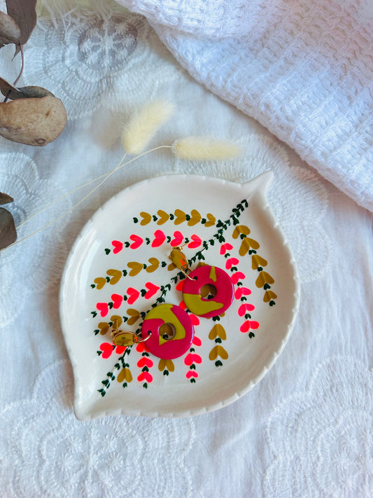 Pendiente donut grande, con tuerca, en color pistacho y rosa.