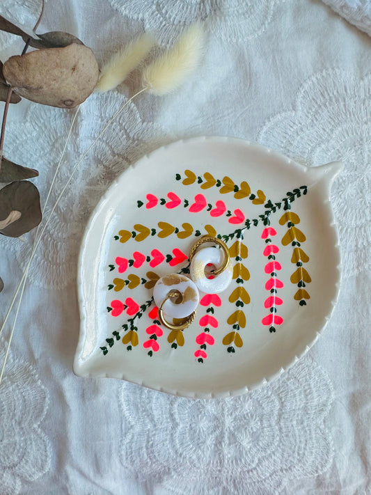 Pendiente donut mediano con aro (con relieve), blanco naranja y rosa bebé.