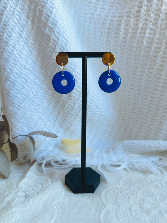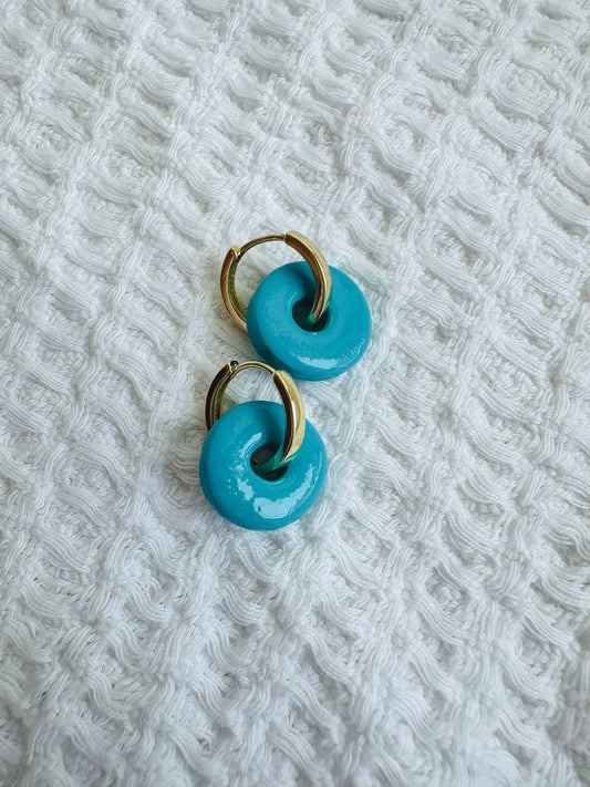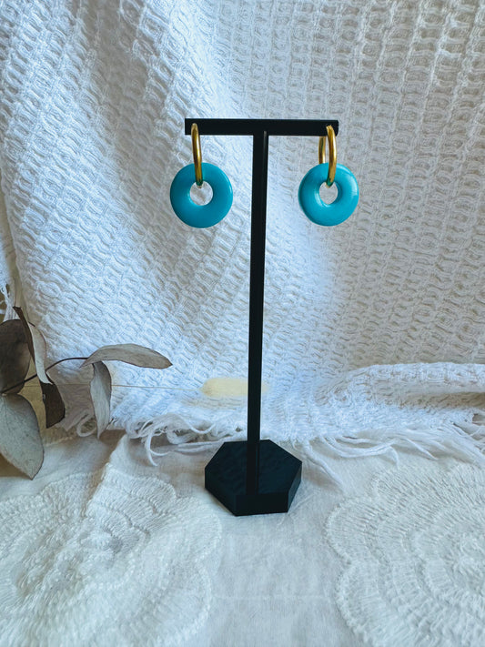 Pendiente donut mediano, con tuerca, azul eléctrico.