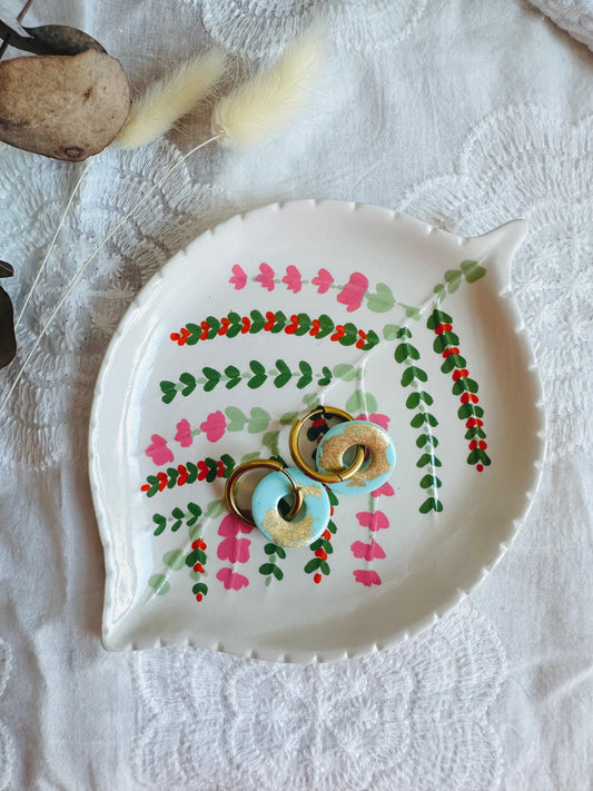 Pendiente donut mediano con aro, verde menta con toques dorados.