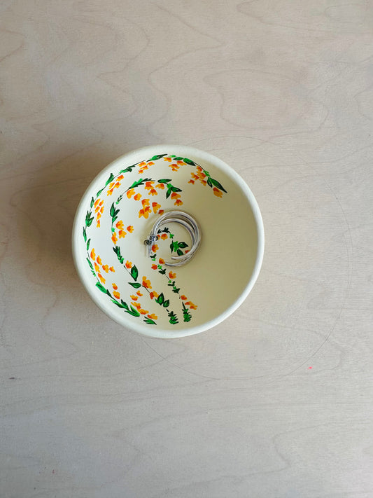 Si te pasa como a mi y te encantan los estampados con motivos muy pequeñitos, esta es tu colección. Todos los cuenquitos y las hojas son de cerámica y están pintados a mano, con pequeñas ilustraciones de flores y hojas, hechas con pincel finito y mucho mucho mimo.
