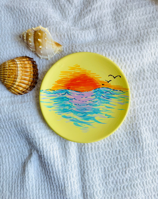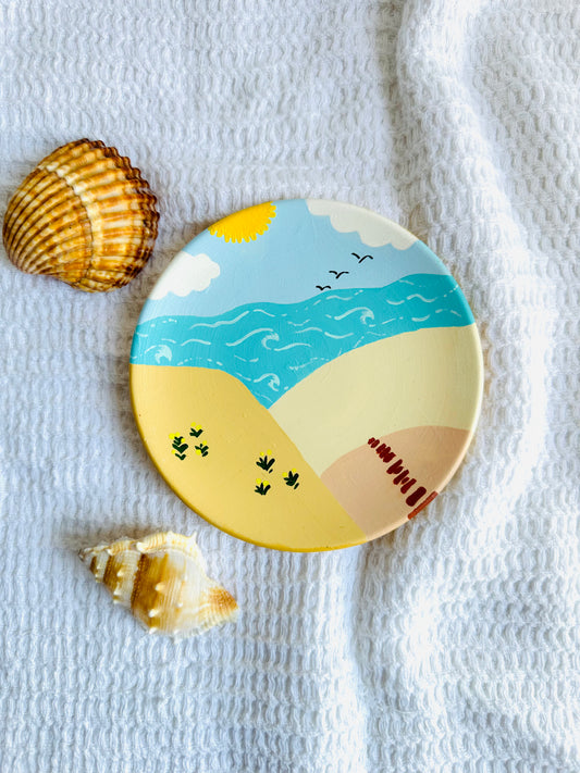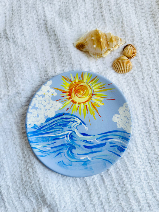 Estos platitos pintados a mano son un trocito de mar , un recuerdo de esos días en los que, el olor a mar, la piel salada y el sol nos acompañan... esos días en los que estamos presentes y nos dejamos llevar por el ritmo de las olas.
